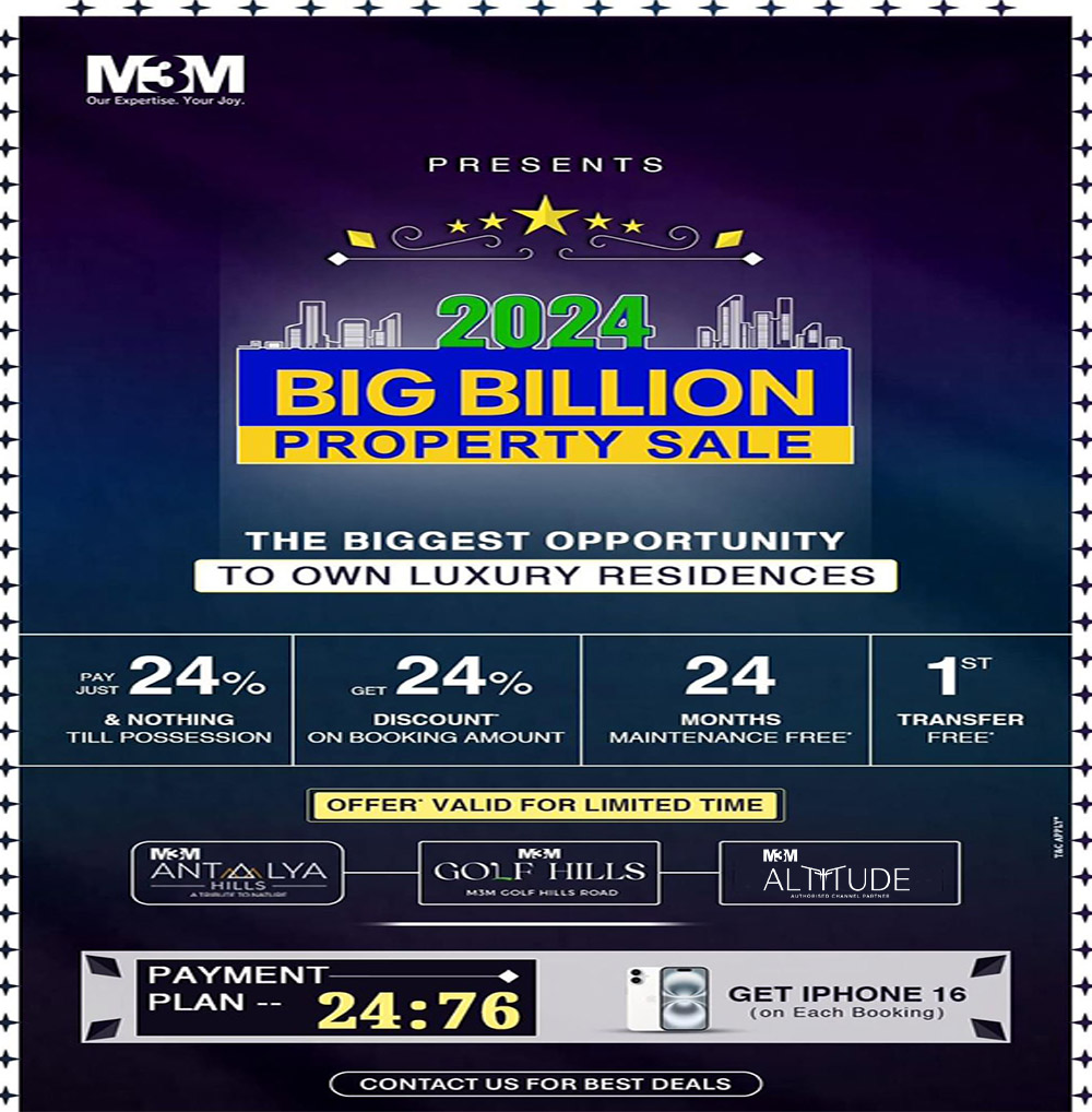 The M3M Group has introduced three new ultra-luxurious residential projects in Gurugram: M3M Antalya Hills, M3M Golf Hills, and M3M Altitude. The Project provides luxurious apartments with excellent amenities. Nothing compares to living in an M3M if you're thinking about purchasing real estate in Gurgaon. Well designed apartments offer heavenly aesthetics and creative leisure opportunities to help you live a life of grandeur.